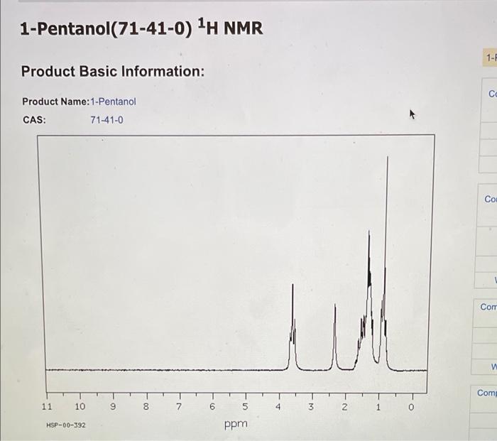SOLVED: 28. Pentane vs. 1-Pentanol When comparing pentane and pentanol: 1. Compare the range of PPM: What range do the peaks show up in pentane? What range do the peaks show up