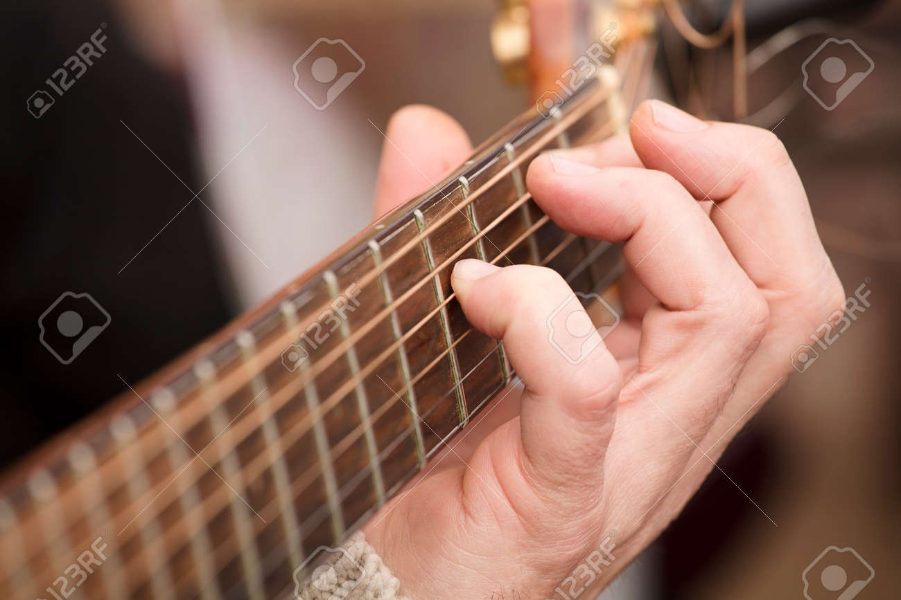 Mano De Guitarrista O Mano De Músico En Acorde De Fa Mayor En ...