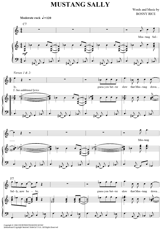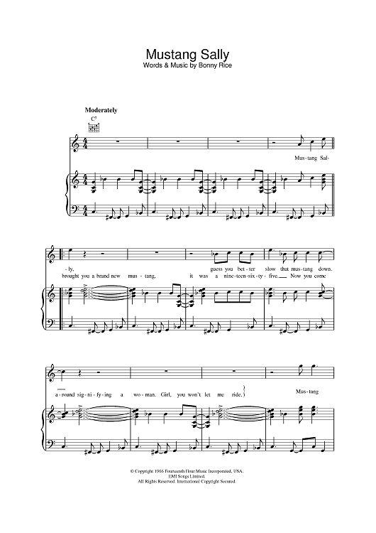 Mustang Sally" Sheet Music by Wilson Pickett for Piano/Vocal/Chords - Sheet Music Now