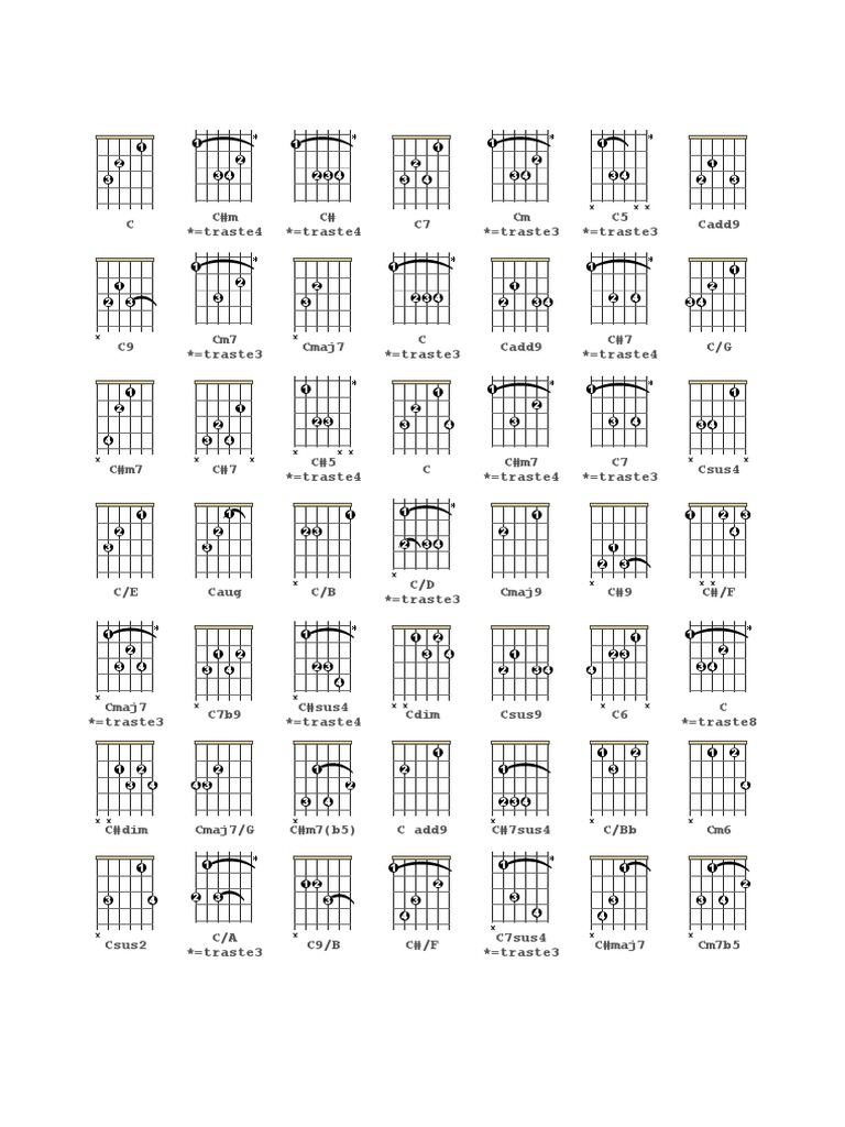 125 Acordes Básicos Libro De Acordes De Guitarra - Tabla Con 125 ...