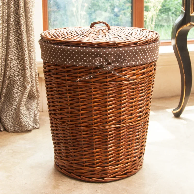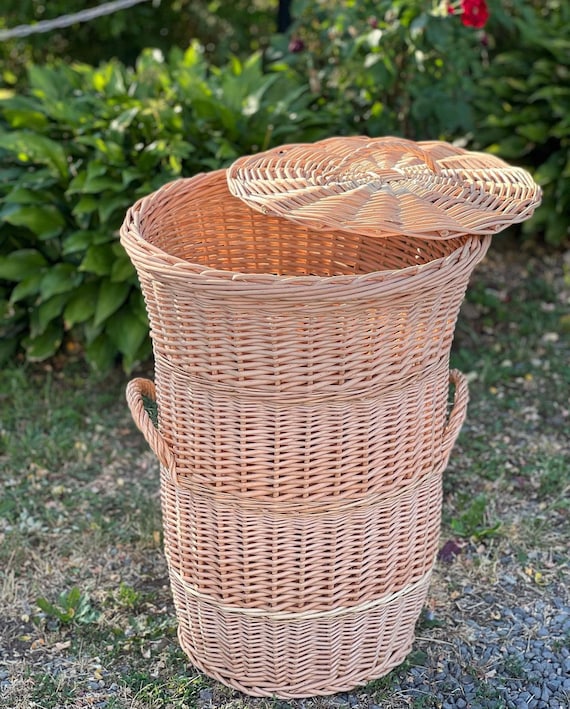Cesta de lavandería redonda de mimbre, cesta de almacenamiento ...