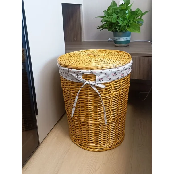 Servicio de lavandería cesta de mimbre grande y redondo con tapa y ...