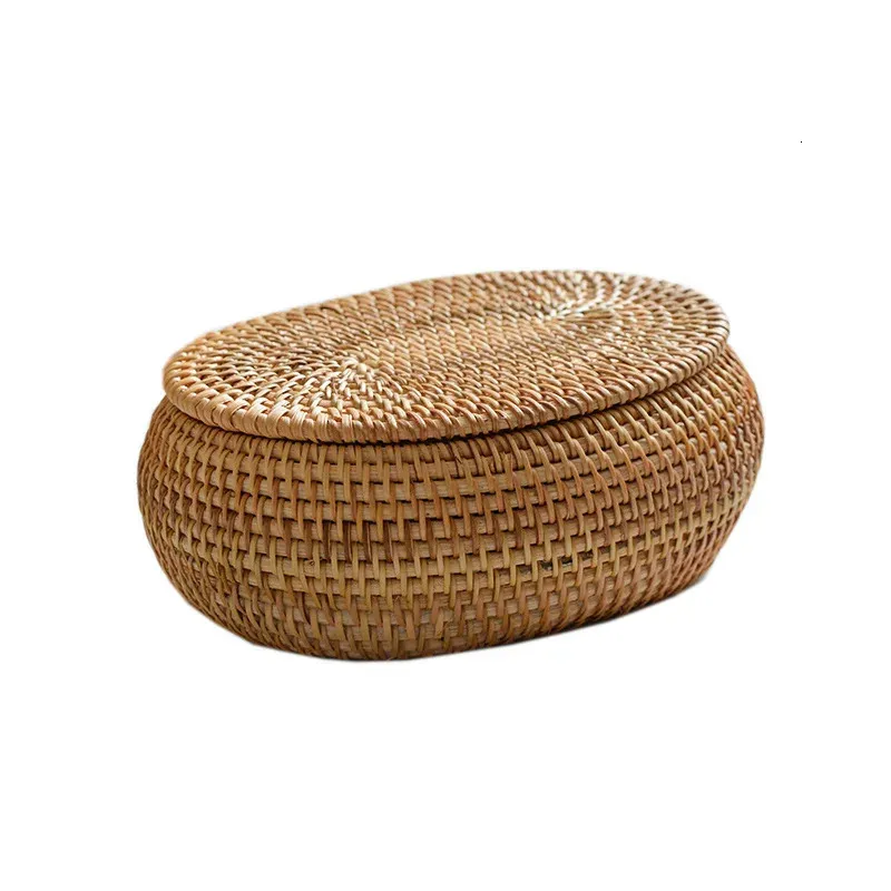 15x12cm Natural Almacenaje Cesta Ratán Con Tapa Exogio - Redonda ...