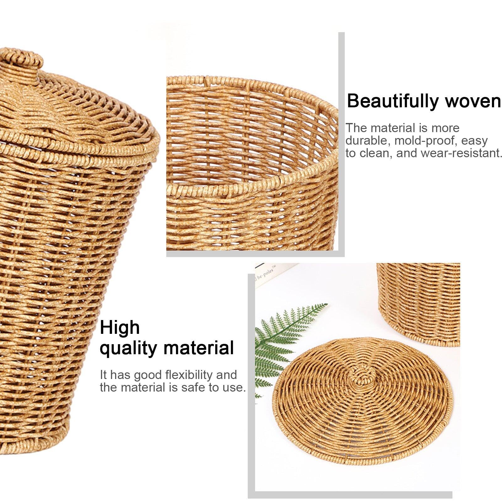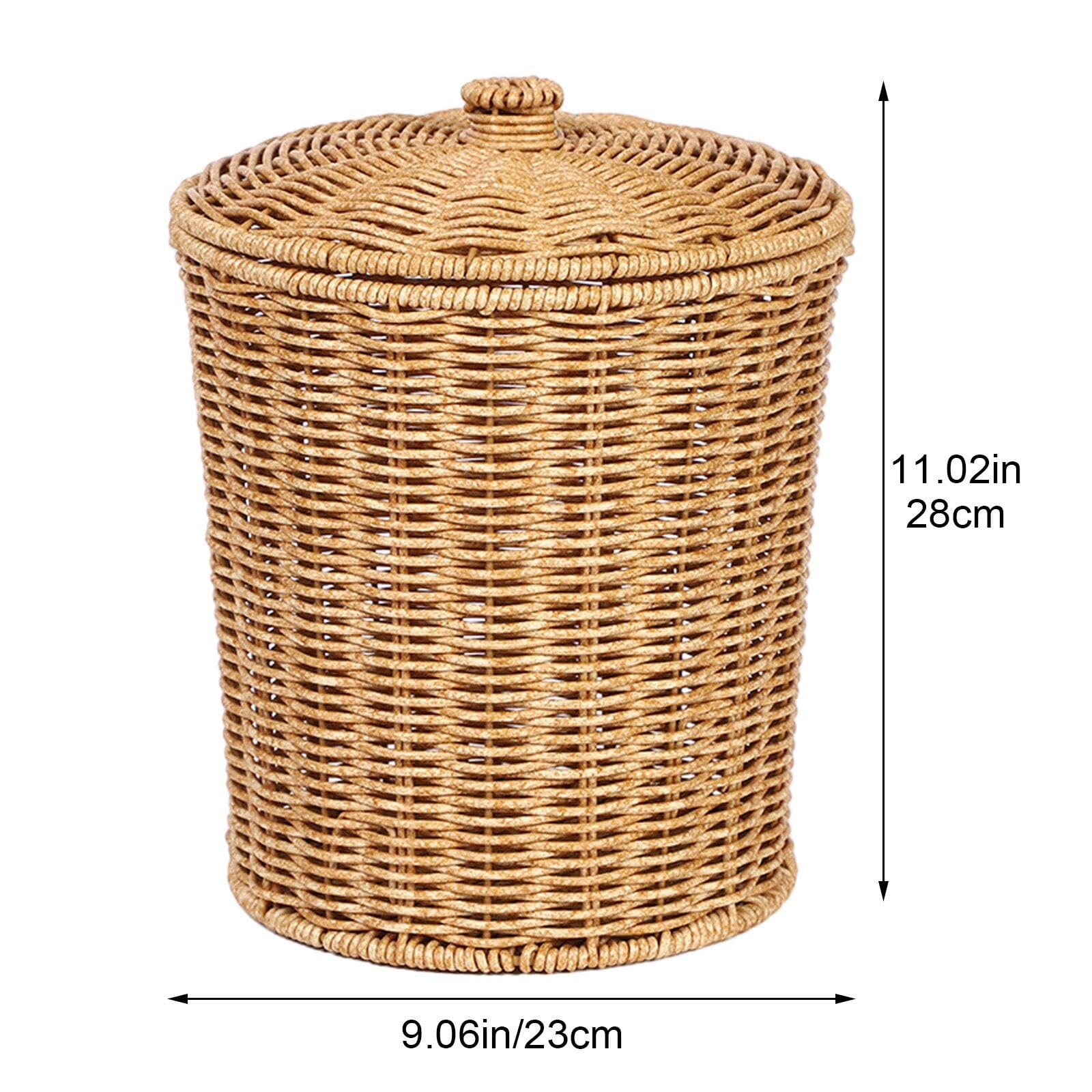 AMOYER Cesta de Mimbre Redonda con Tapa Cesta de Almacenamiento de ...
