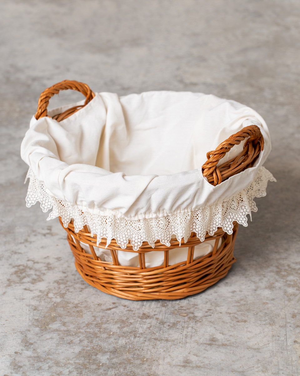 Cesto de mimbre redondo color natural para almacenamiento del hogar