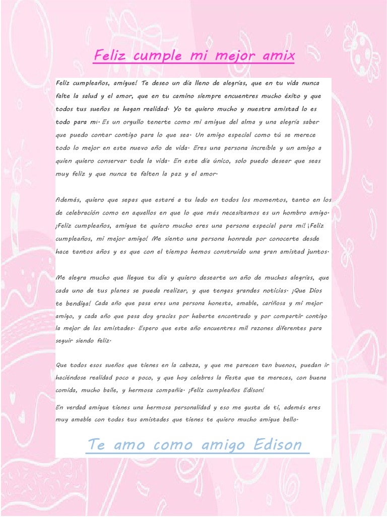 Feliz Cumple Mi Mejor Amix: Te Amo Como Amigo Edison | PDF