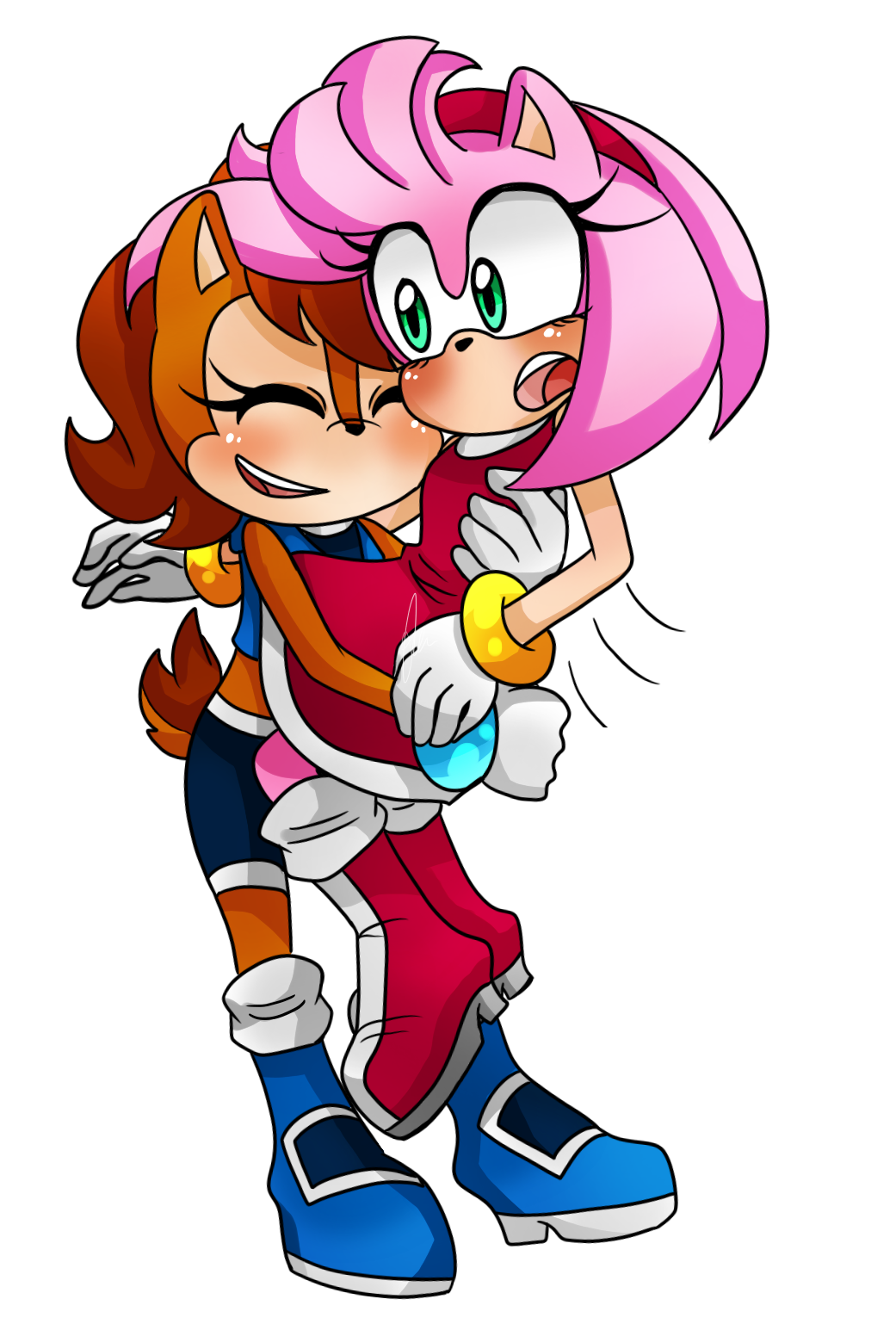 249065 - safe, artist:ninafavole, amy rose (sonic), princess sally acorn (sonic), sonic the hedgehog (sonic), chipmunk, hedgehog, mammal, rodent, archie sonic the hedgehog, sega, sonic the hedgehog (series), male/female, polyamory, shipping, sonally (