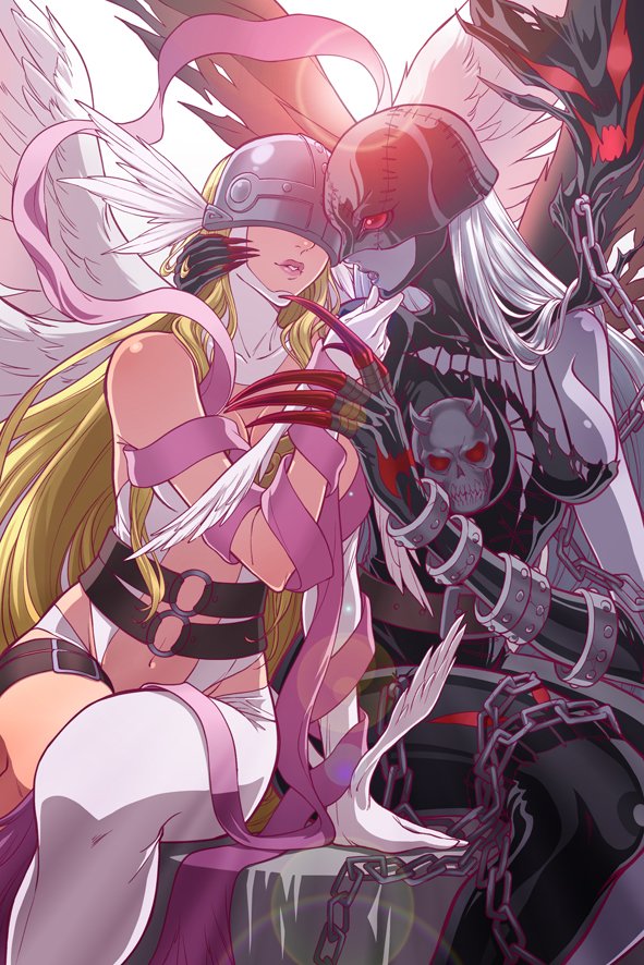 Angewomon and ladydevimon (digimon) drawn by level-00 | Danbooru