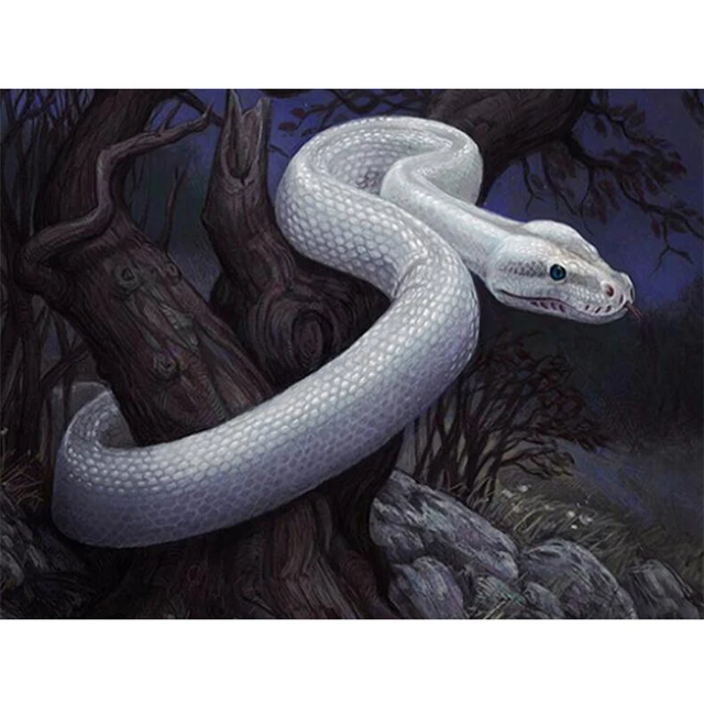 Pintura de diamantes 5D Diy por número, Serpiente Blanca, taladro cuadrado completo, bordado de diamantes, animales, Kits de punto de cruz, arte de pared, pasatiempos