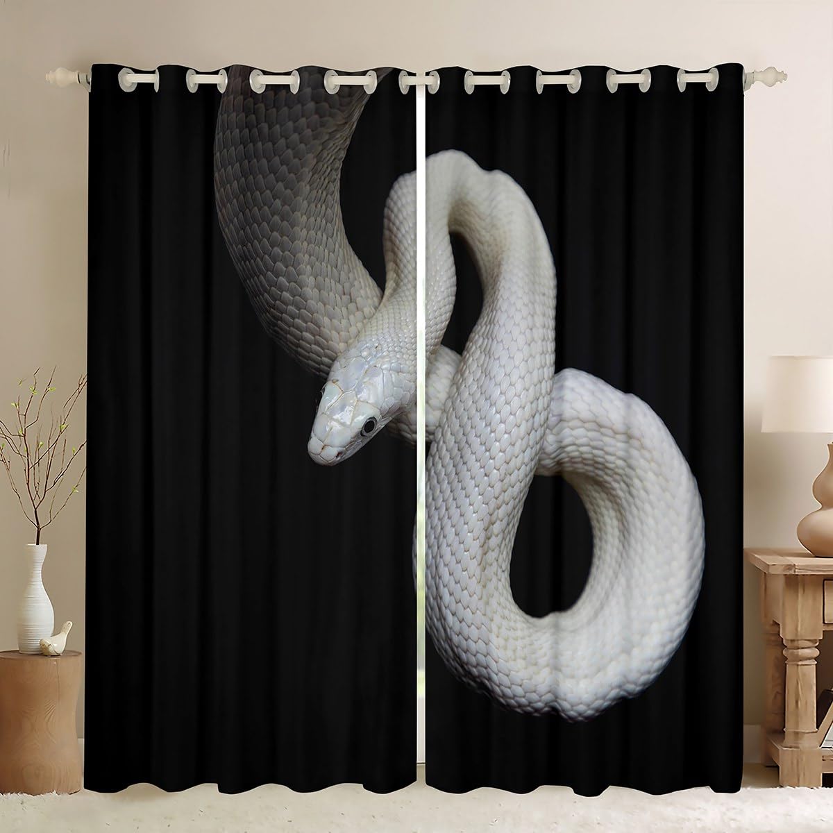 Cortinas y cortinas de serpiente blanca, 3D en forma de S con forma de pequeño dragón para ventanas de reptiles, vida silvestre africana, animales ...