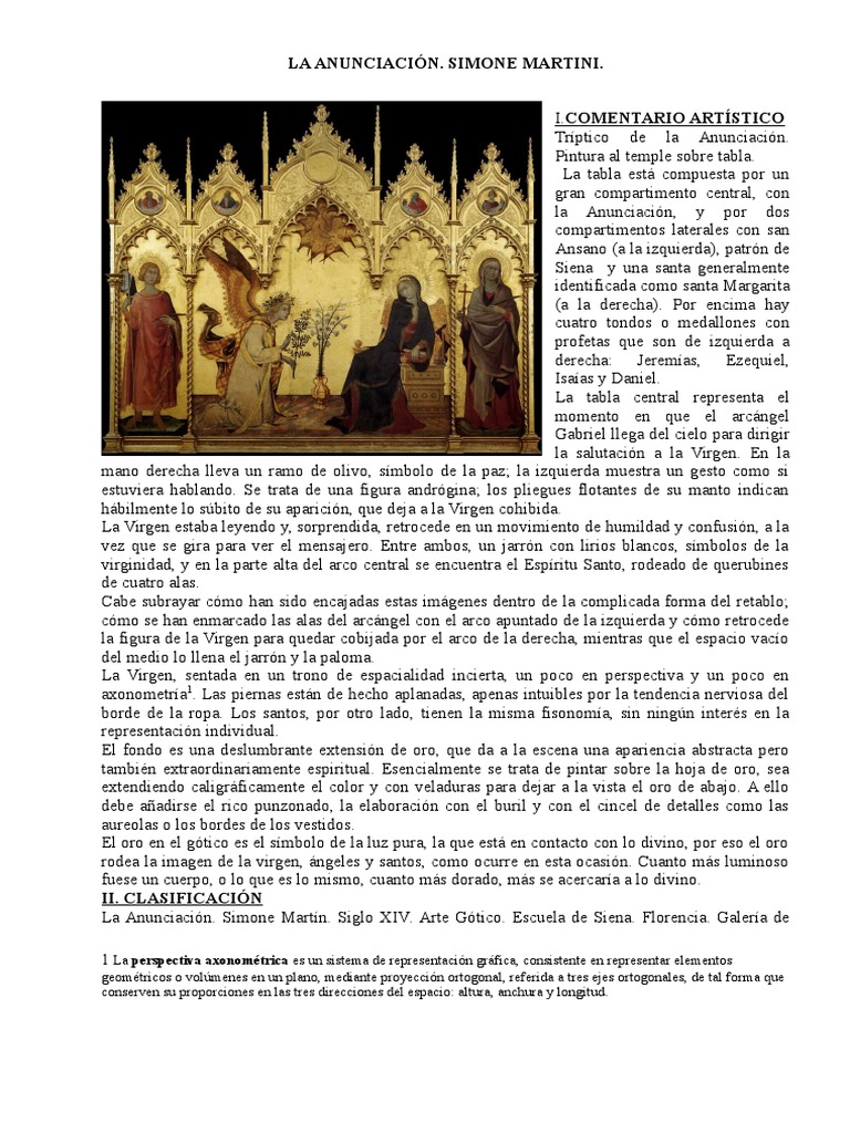 LA ANUNCIACIÓN Simone Martini | PDF | Perspectiva (Gráfica ...