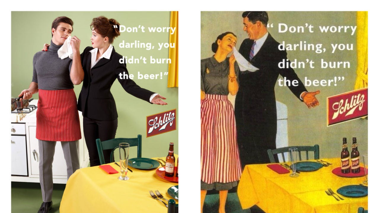 Un fotógrafo invierte los roles de género en anuncios antiguos para denunciar el machismo en la publicidad