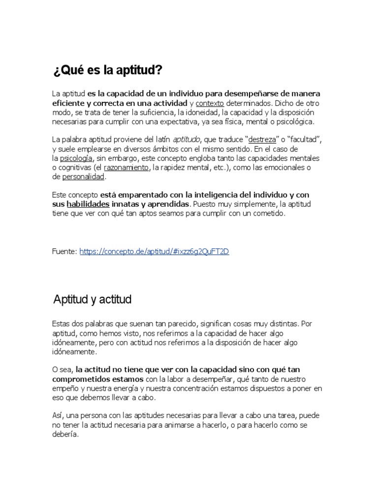 Qué Es La Aptitud | PDF | Actitud (psicología) | Inteligencia