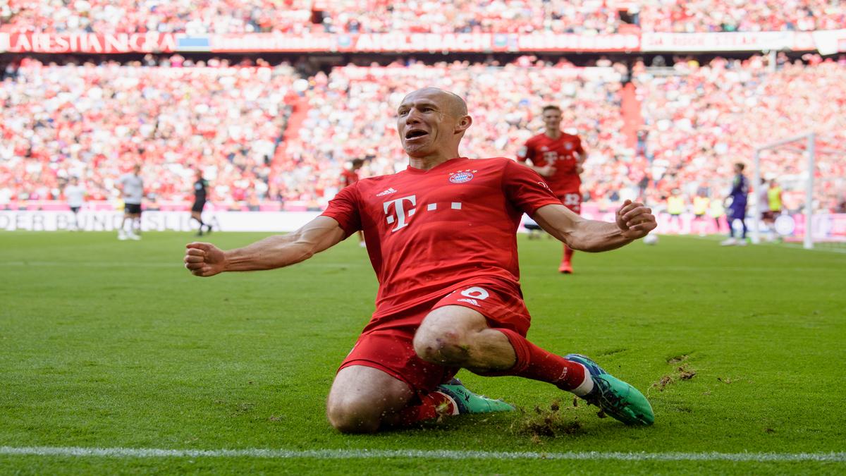 Bayern's Arjen Robben celebrates after scoring during the ...