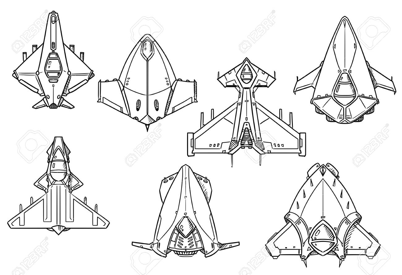 Conjunto De Diseños De Nave Espacial De Nave Espacial Dibujada A ...