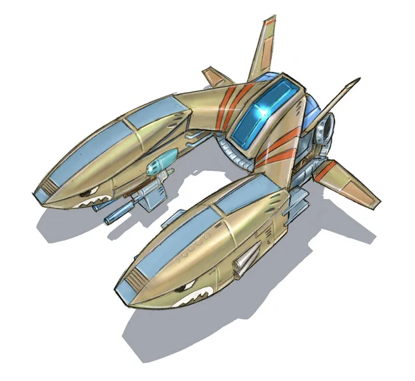 Dibujo de arte de concepto de tinta de nave espacial futurista o ...