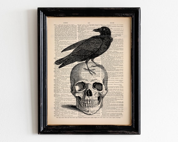 Impresión de arte de calavera de cuervo, decoración de habitación ...