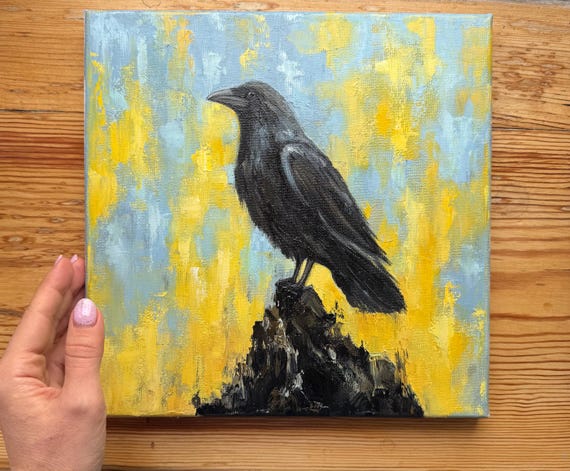 Pintura al óleo de cuervo: Arte de cuervo empastada, lienzo de ...
