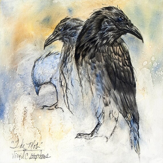 Raven art, The Mob, print from my original oil painting of a 3 Pine Ravens, black bird, crows, artwork of a Ravens, print of ravens