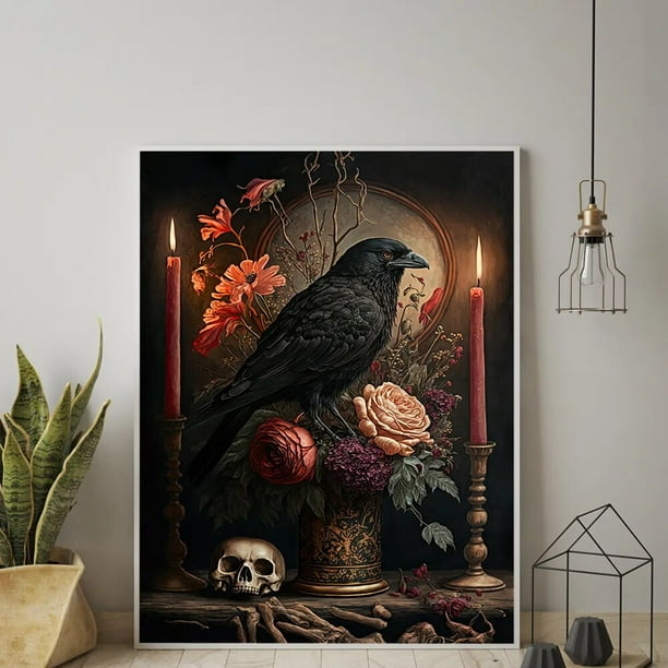 Cuadro Decorativo Gótico Impresión De Arte De Calavera De Cuervo ...