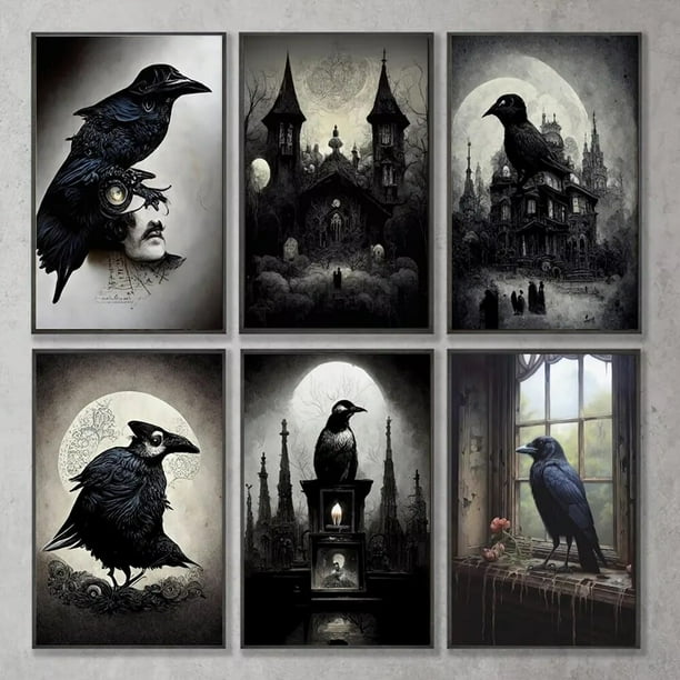 Amazon.com: Arte de pared con estampado de cuervo oscuro, pinturas ...