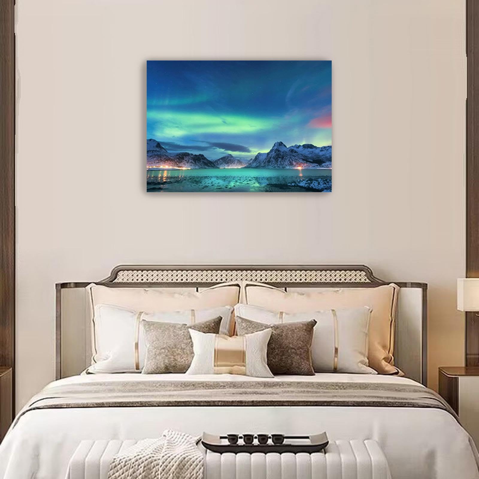 Arte de parede em tela Aurora Boreal - Pintura de cenário de luzes ...