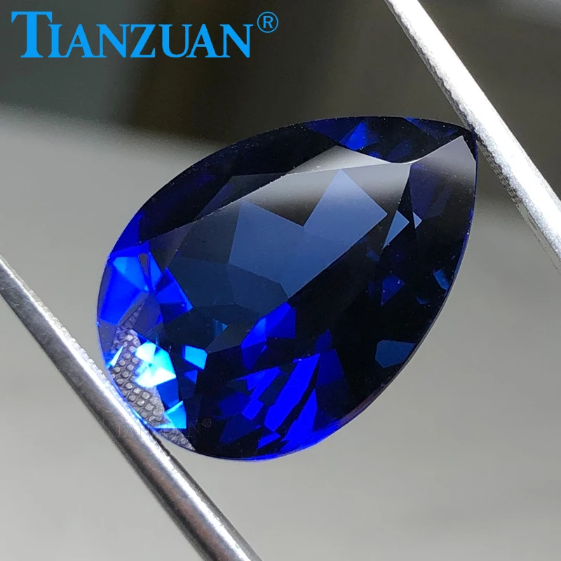 Sapphire safir sintetis bentuk pir potongan alami batu longgar bening korundum buatan untuk membuat perhiasan bahan DIY