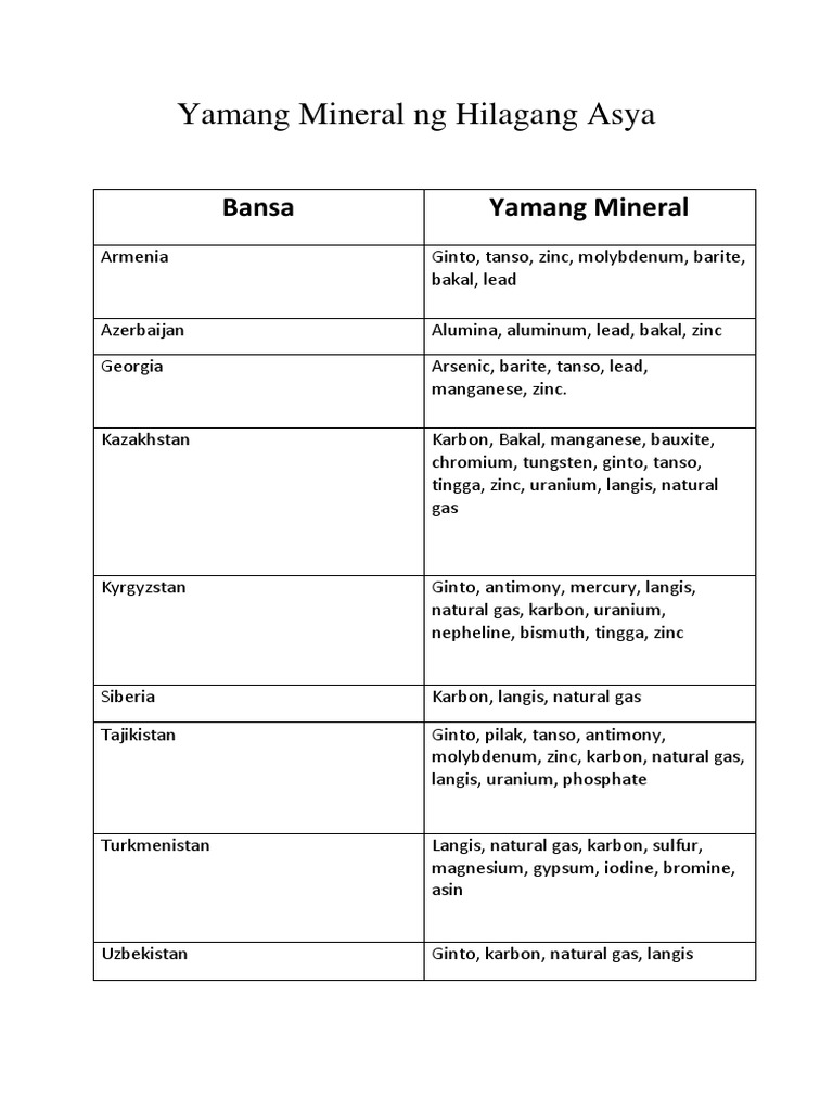 Mga yamang mineral sa asya - Brainly.ph