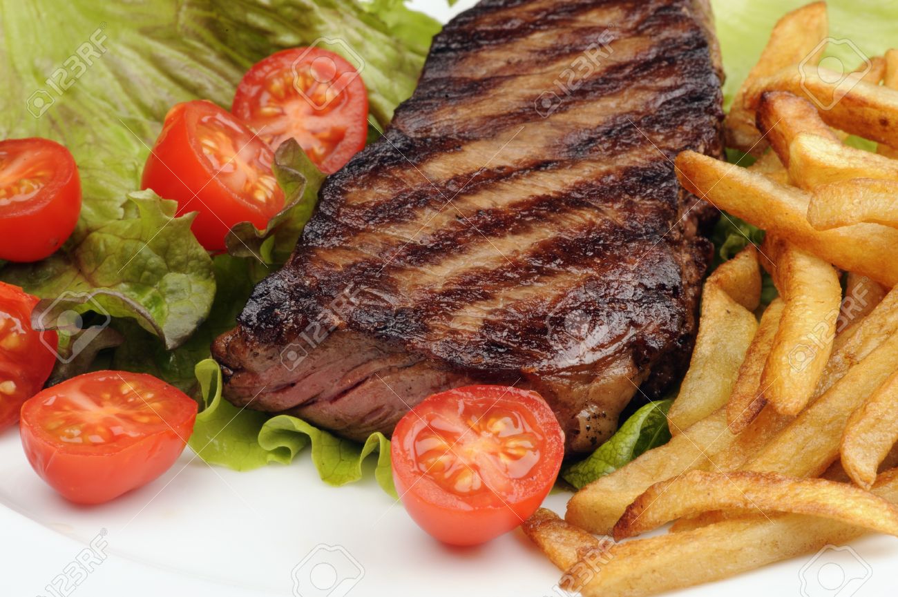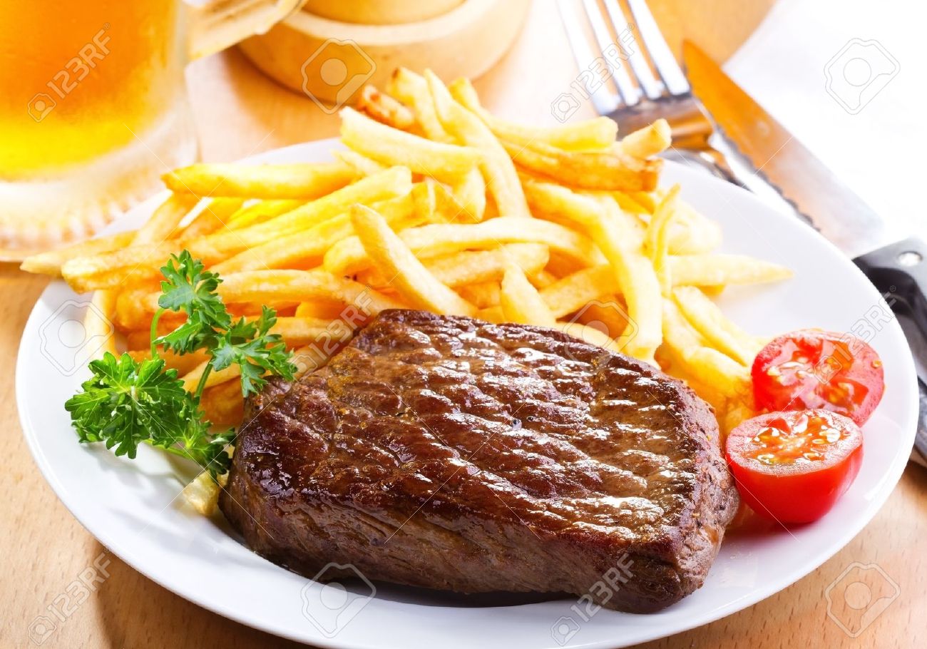 Bistec A La Parrilla Con Papas Fritas Francés Fotos, retratos ...