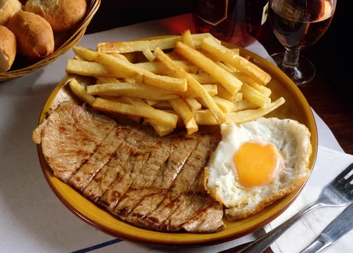 Bistec con papas fritas | Bistec con papas, Comida chilena, Papas ...