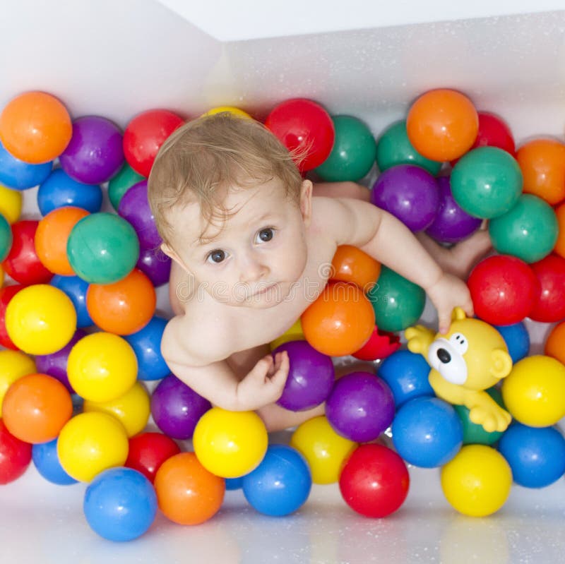 Bebé en bolas imagen de archivo. Imagen de mirando, retrato - 6078157