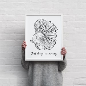 Impresión de cita inspiradora Simplemente sigue nadando cuando la ...