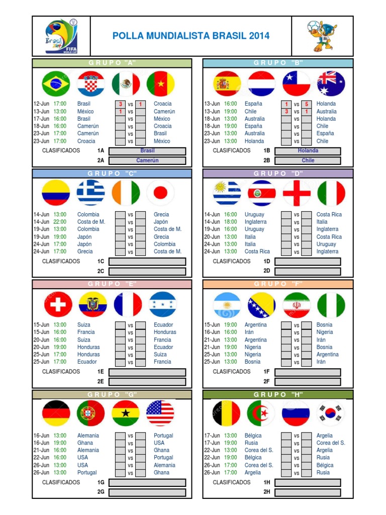 Calendario de partidos Brasil 2014 (versión pdf) – Federación ...