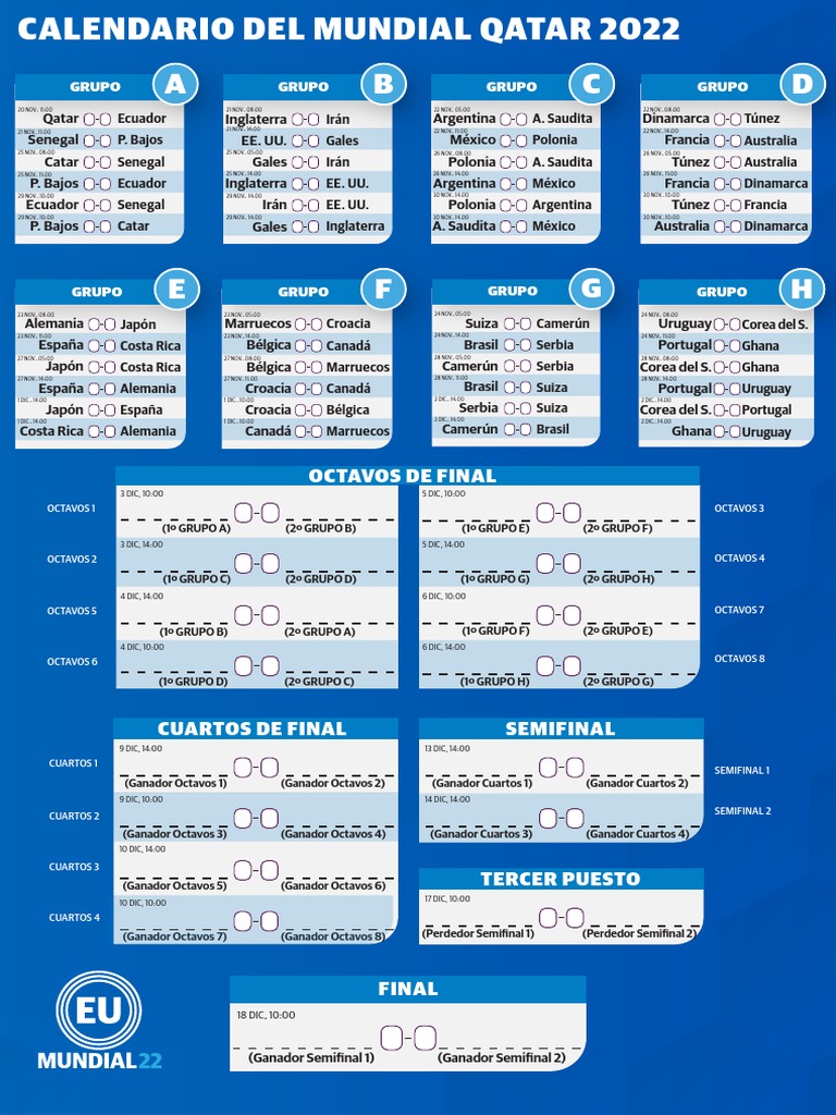 Calendario Mundial Qatar 2022 PDF | PDF | Asociación de Futbol ...