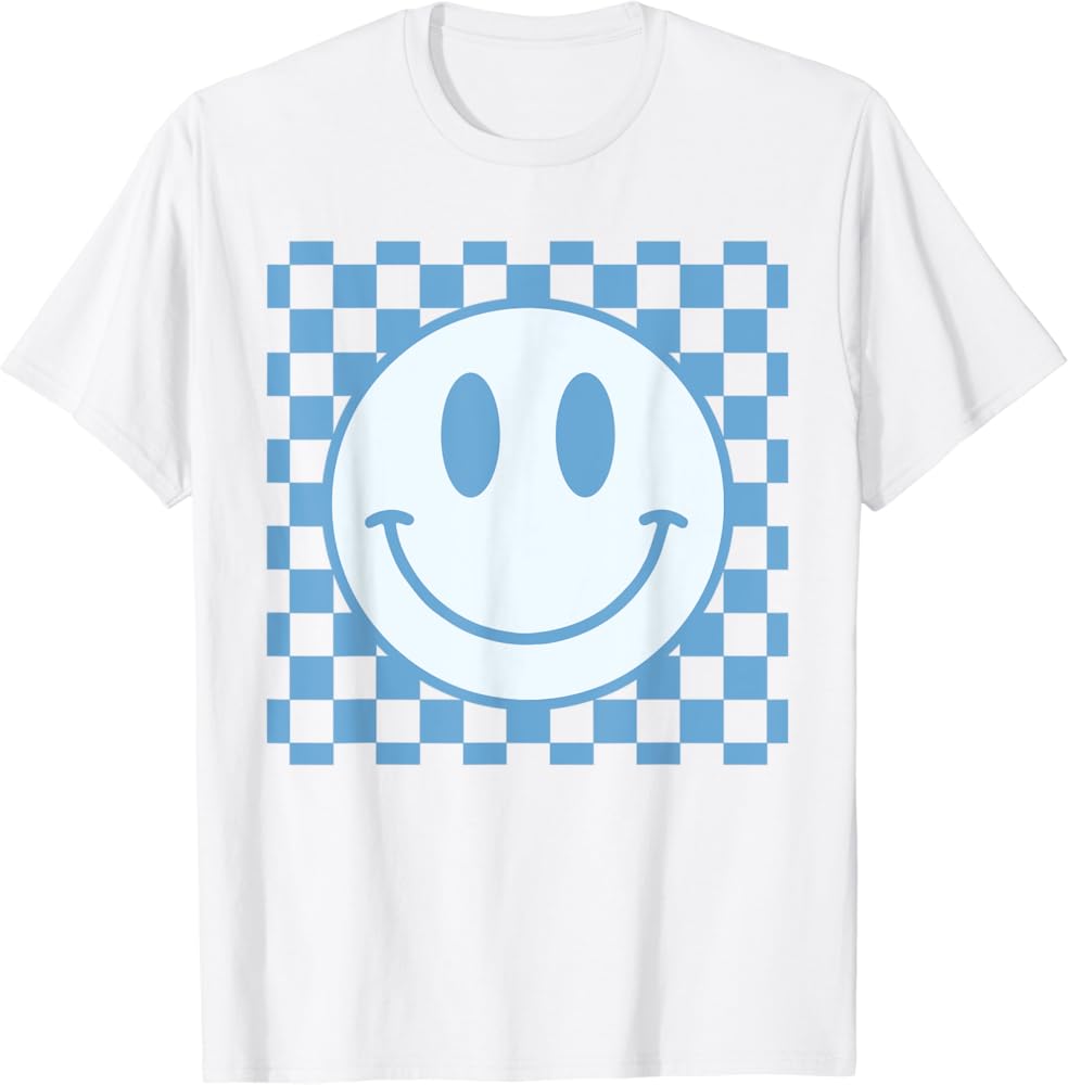Amazon.com: Camisetas divertidas de cara feliz a cuadros con ...