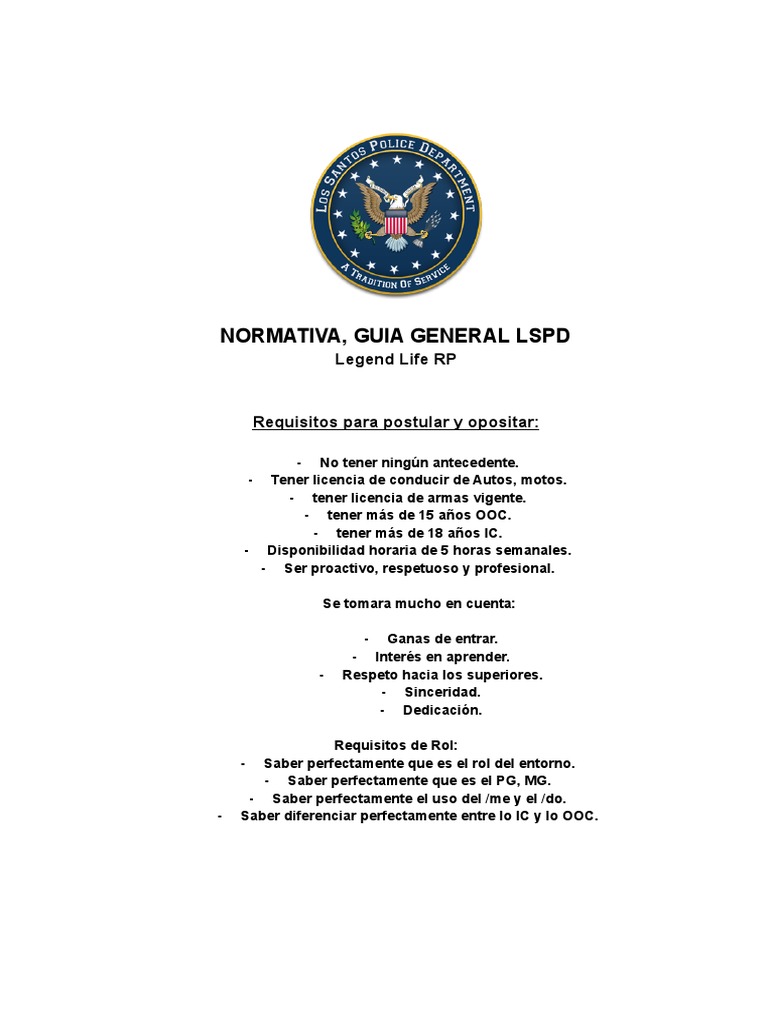 Normativa, Guia General LSPD Legend Life | PDF | Policía | Teniente