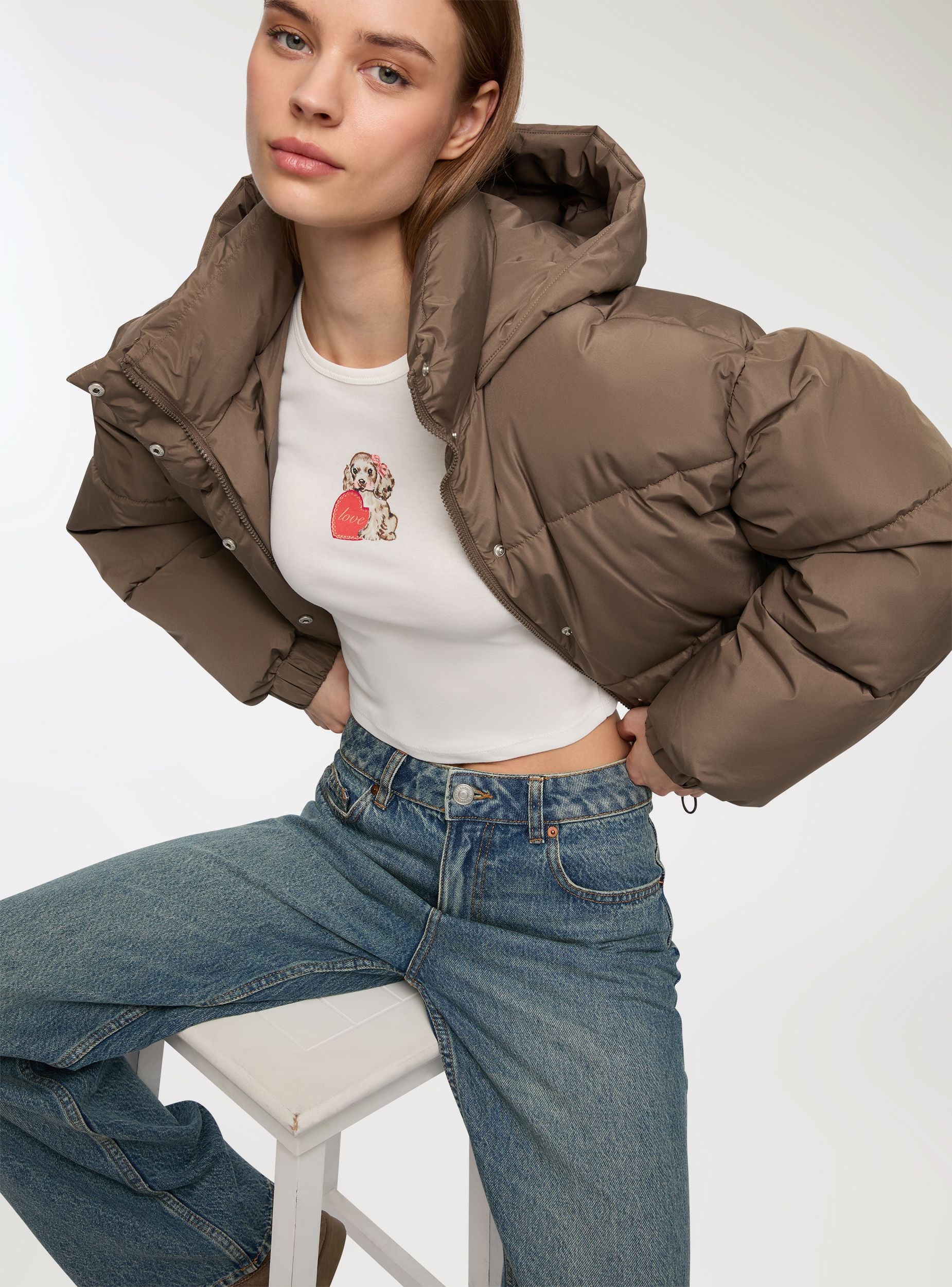 Chaqueta corta con cuello alto y capucha – Terranova