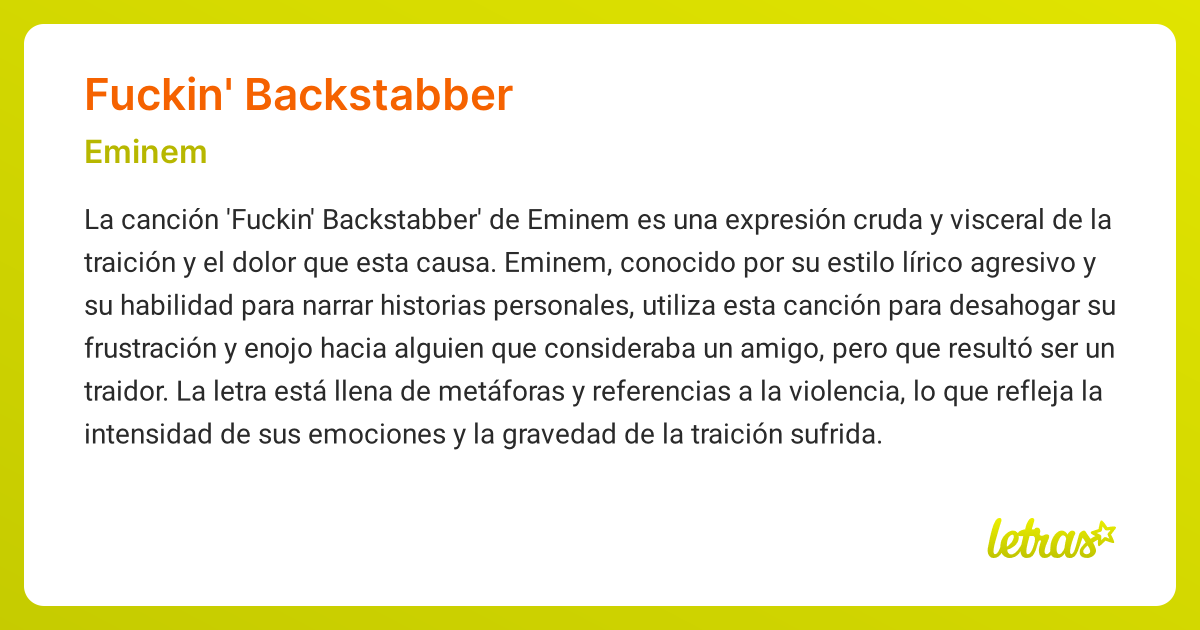 Significado de la canción FUCKIN' BACKSTABBER (Eminem) - LETRAS.COM