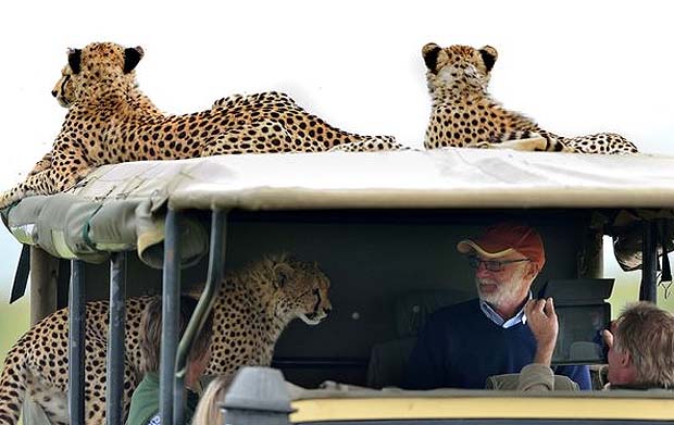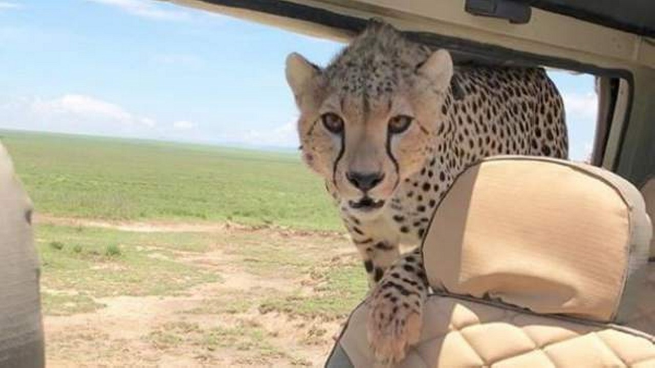 Un guepardo se cuela por sorpresa en un coche de safari en ...