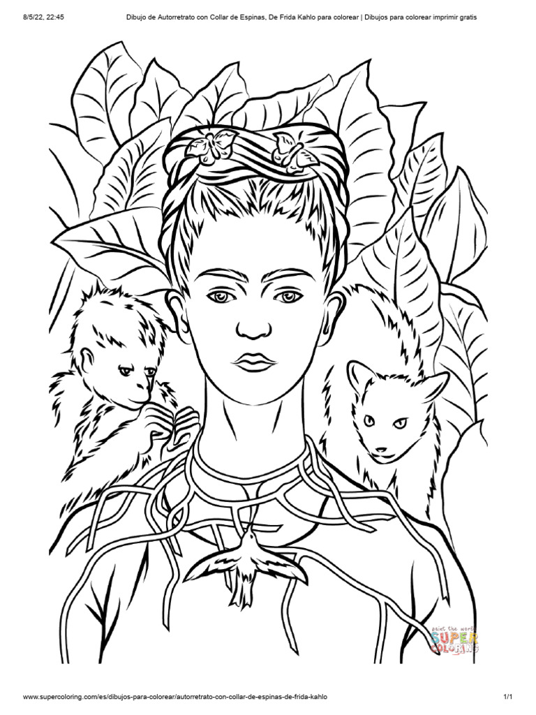 Dibujo de Autorretrato Con Collar de Espinas, de Frida Kahlo para ...