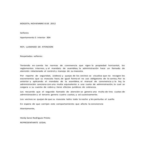 ▷ Ejemplo de carta de reclamo a junta de condominio