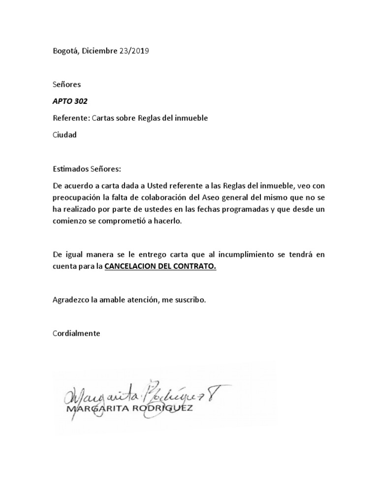 Carta de terminación de contrato de arrendamiento Descarga aquí | Ciencuadras