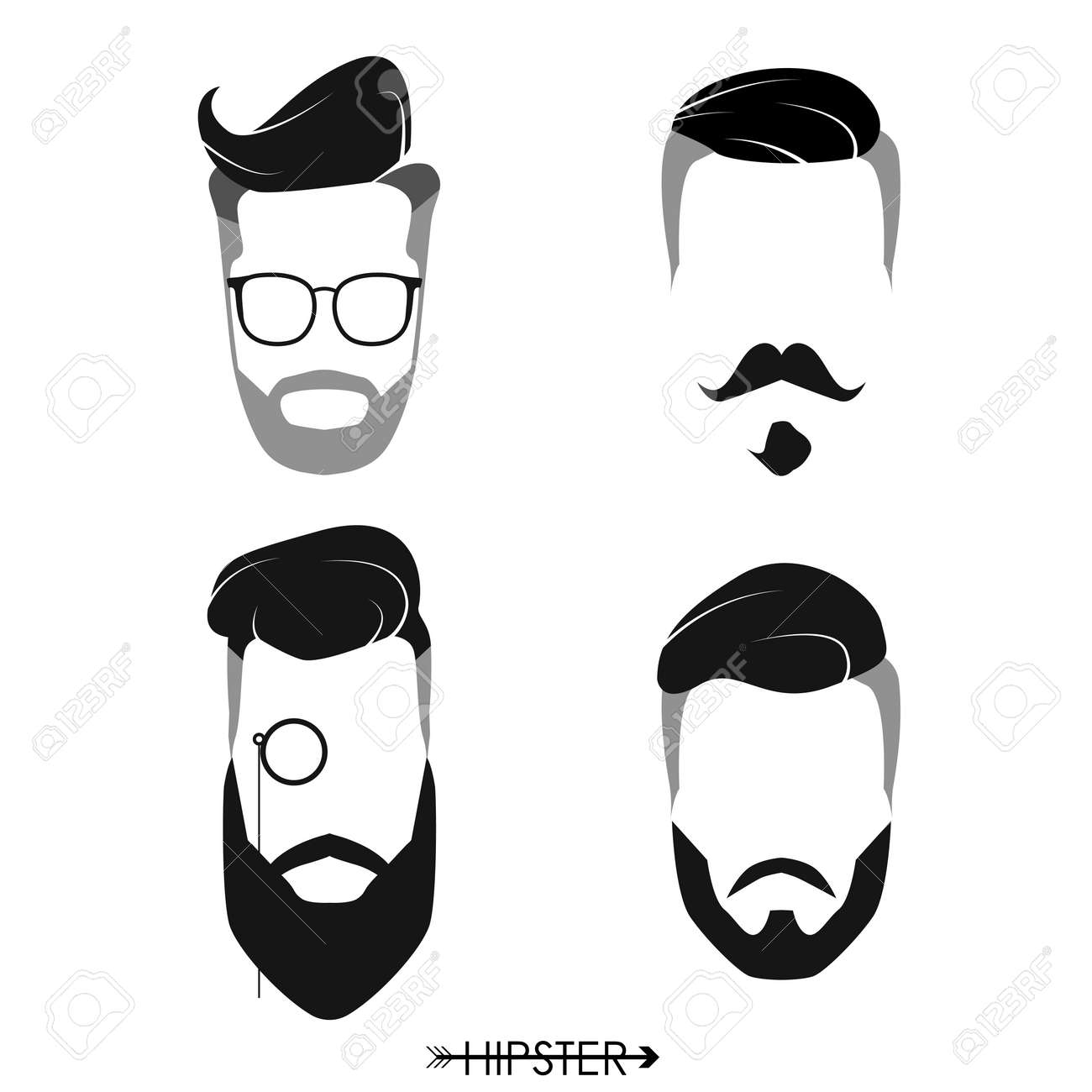 Hipster Peinado Barba Estilo Vectorial Bocetos Los Hombres Caras ...