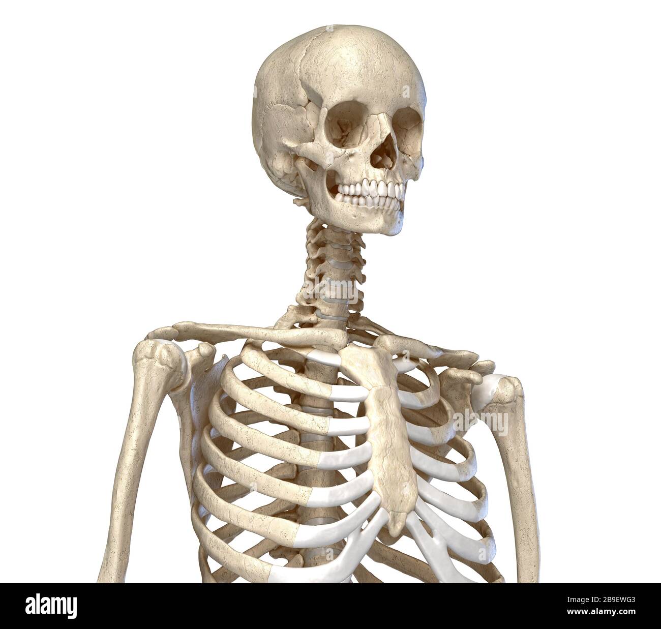 Sistema esquelético del torso humano, vista frontal sobre fondo ...