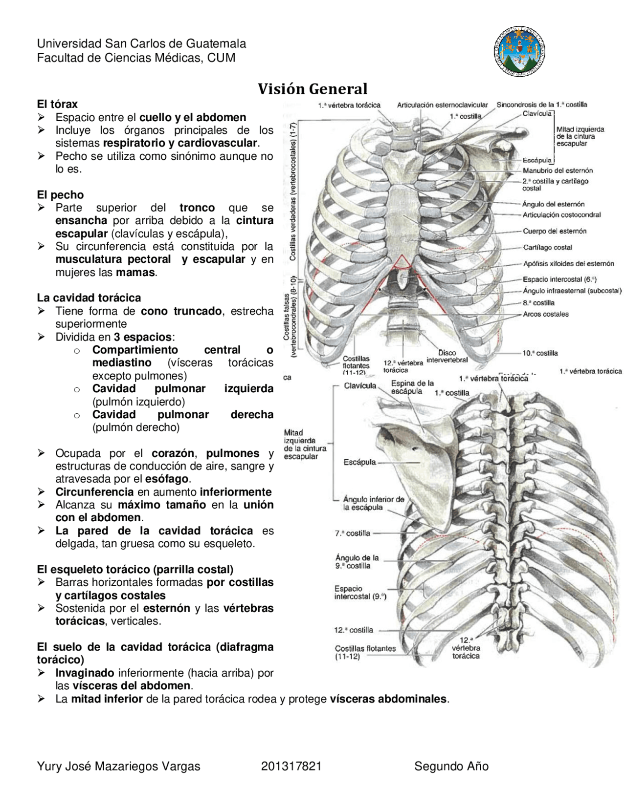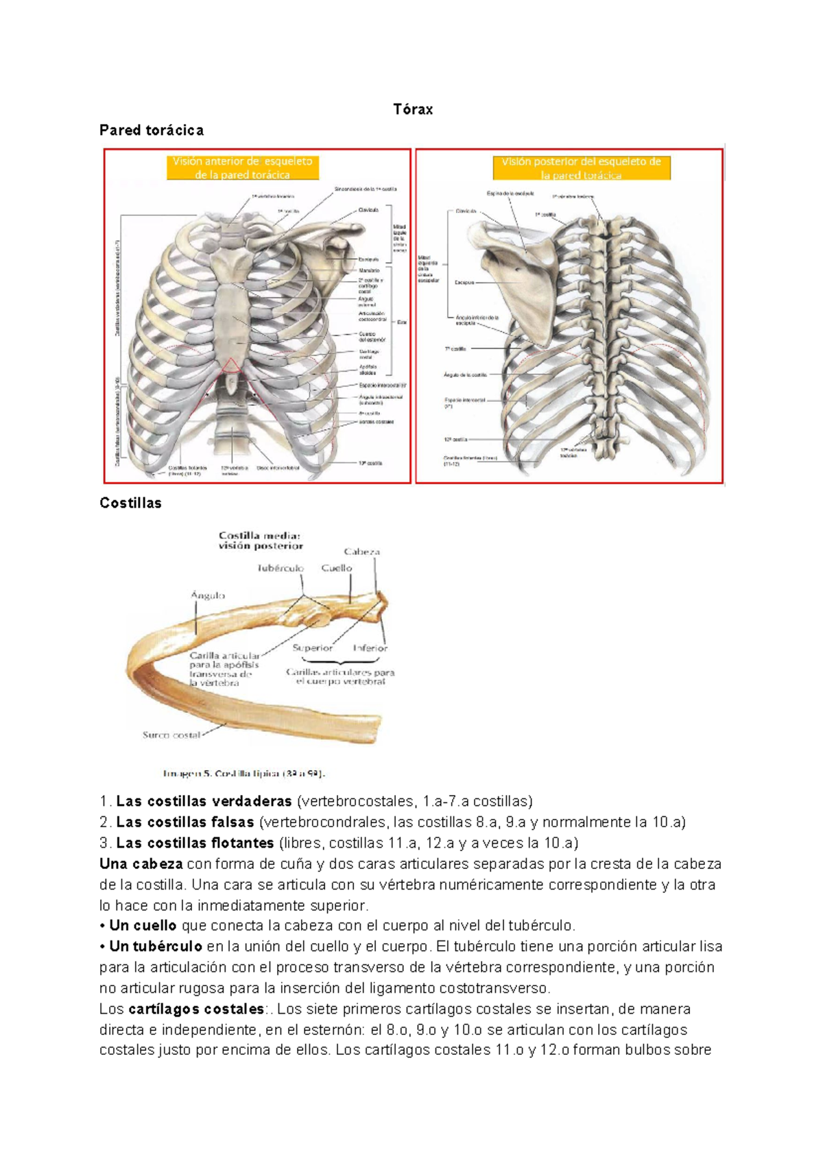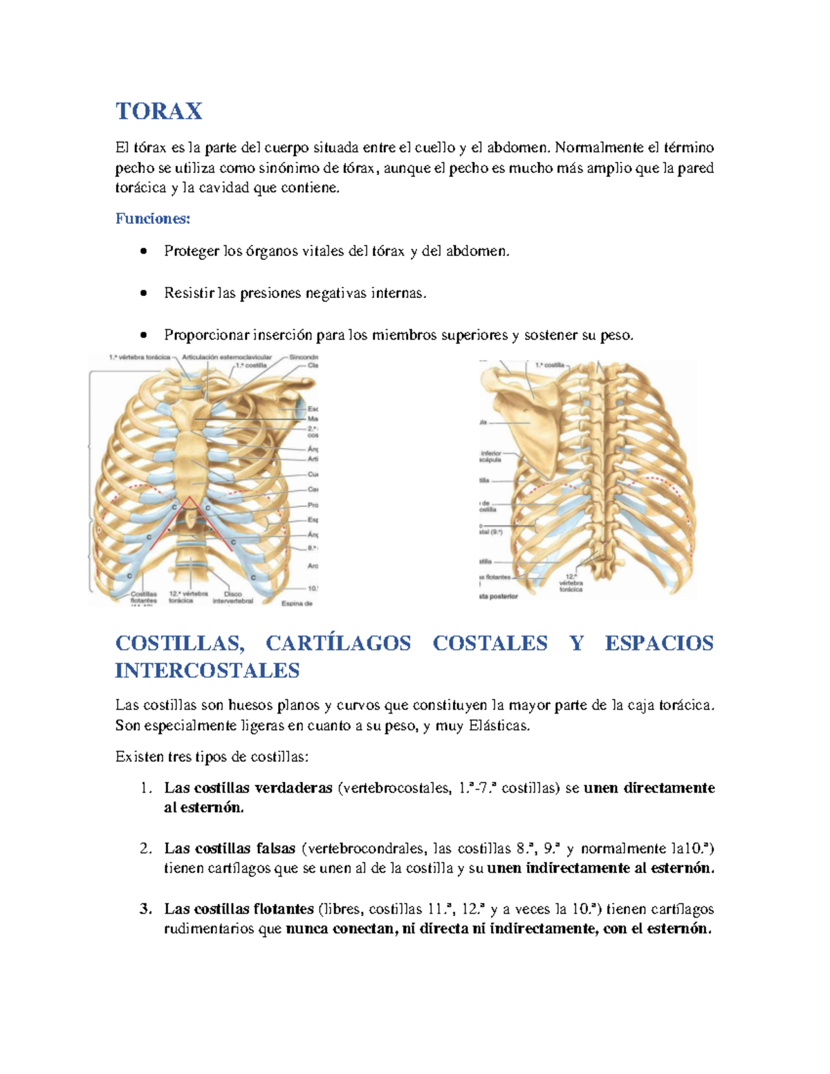 Anatomía: Tórax y esqueleto de la pared torácica | Resúmenes de ...
