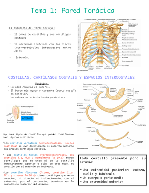 Introducción Tórax, Esqueleto de la pared torácica - General El ...