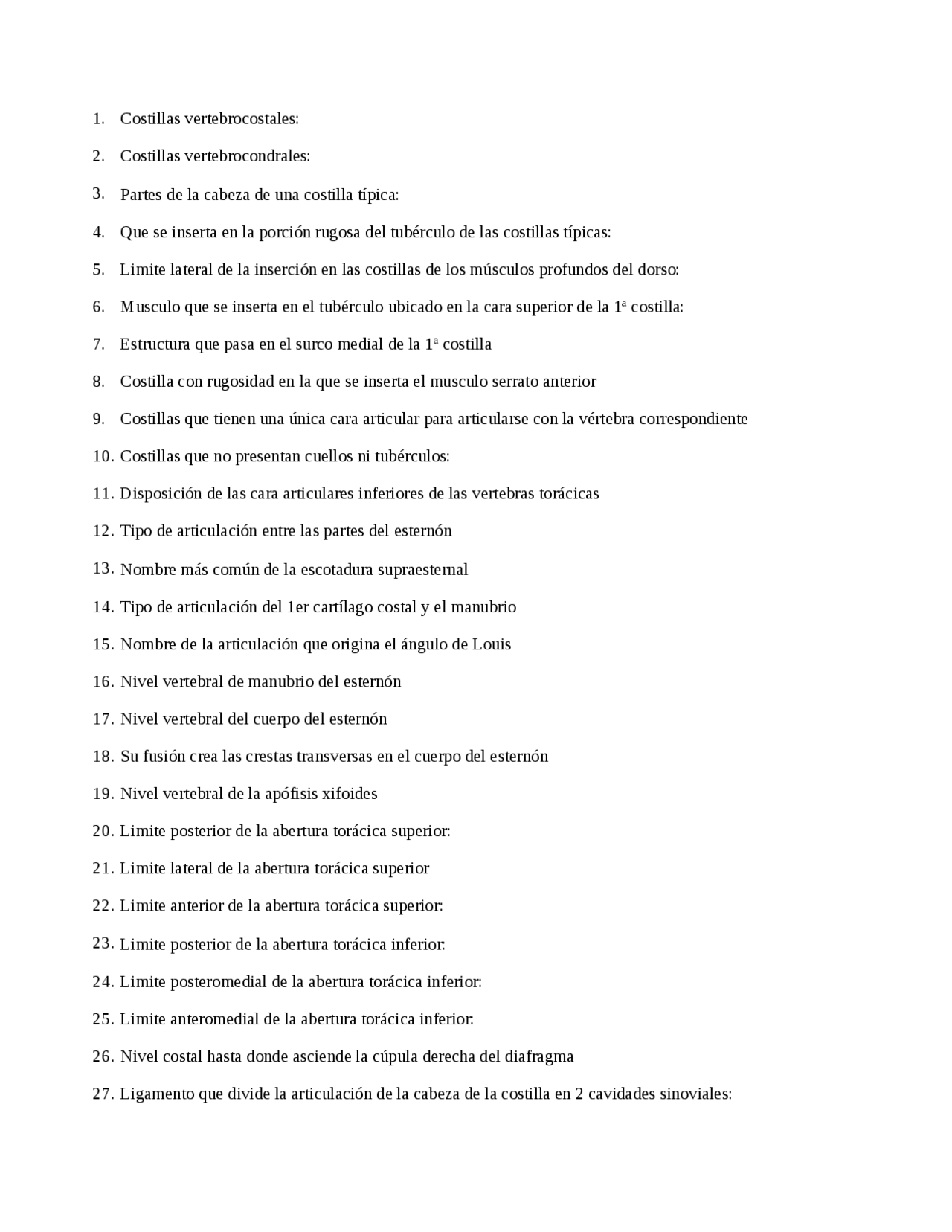 Examen de preguntas abiertas de tórax | Ejercicios de Anatomía ...