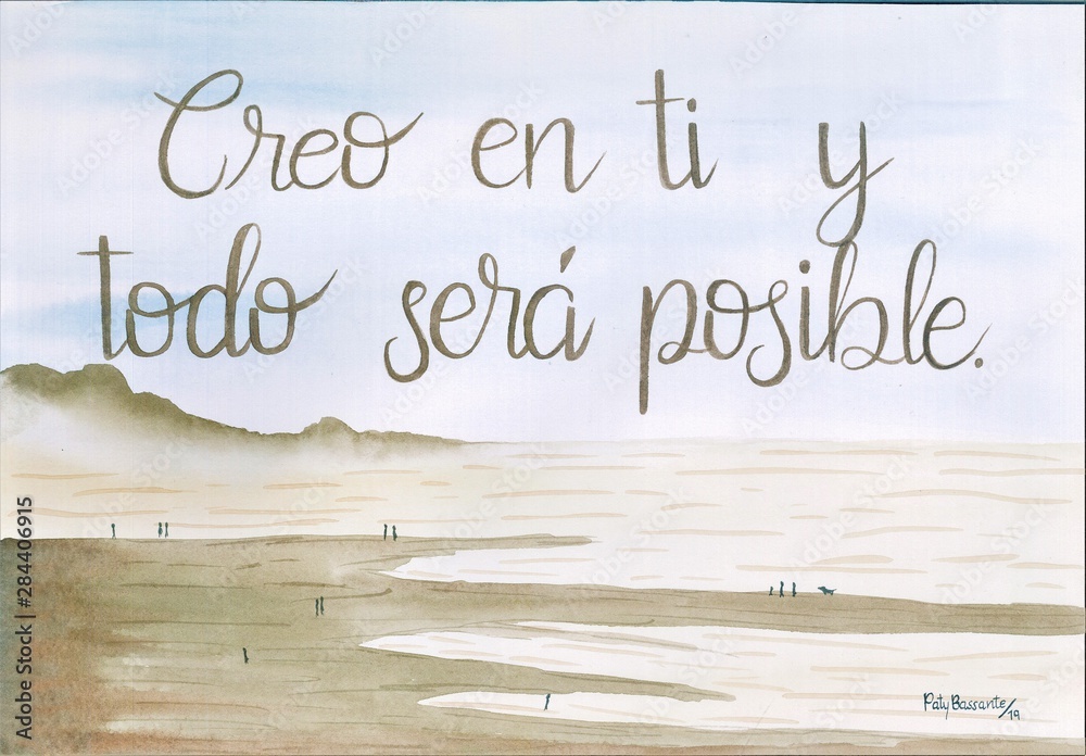This is a handmade painting, using watercolors. It says: Creo en ...