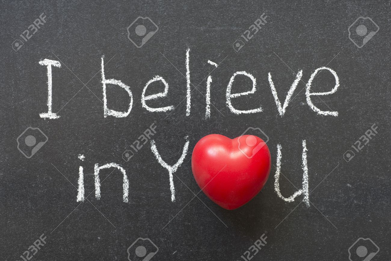 Yo Creo En Ti Frase Escrita A Mano En La Pizarra Con El Símbolo ...