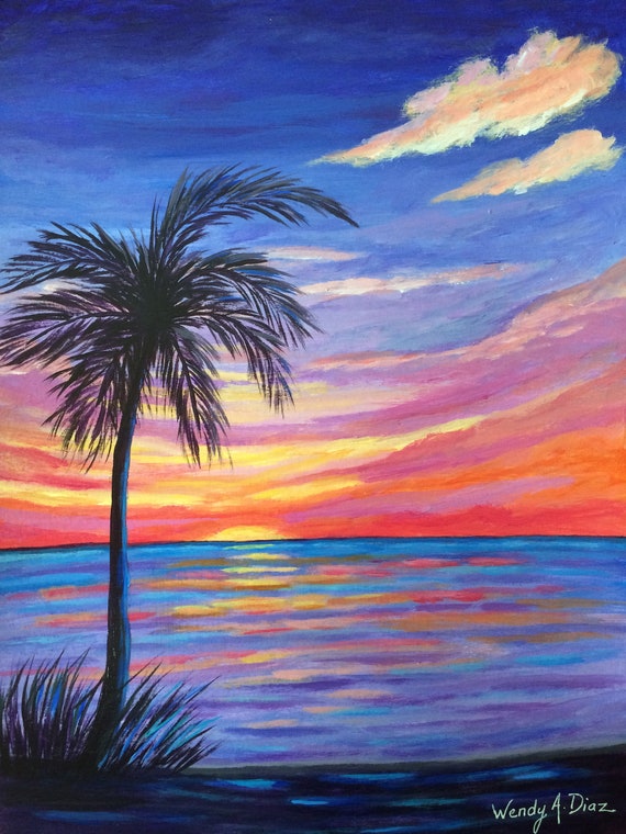Atardecer púrpura rosa con palmeras pintura al óleo sobre lienzo, pintura oceánica, pintura tropical, puesta de sol caribeña, - Etsy España | Sunset canvas painting, Tropical painting, Small canvas art